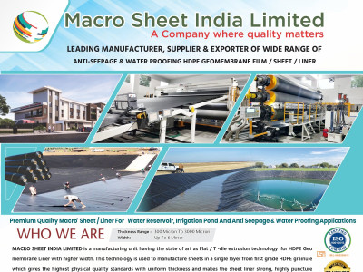 Established in the year 2021, Macro Sheet India Limited is an ISO 9001:2015 certified company, dedicated to environmental protection and water conservation practices, one of the reputed and renowned producers of Coextruded Multi-layer HDPE Geomembrane commonly known as PE Films, Sheets, Liners and Pond Liners.